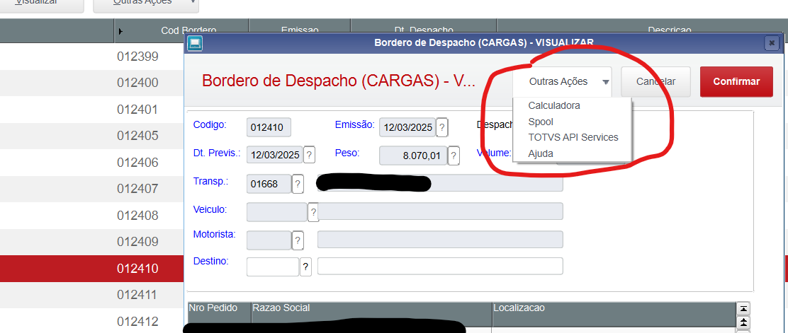 A necessidade é chamar uma outra customização a partir do botão Outras Ações dessa MsDialog.