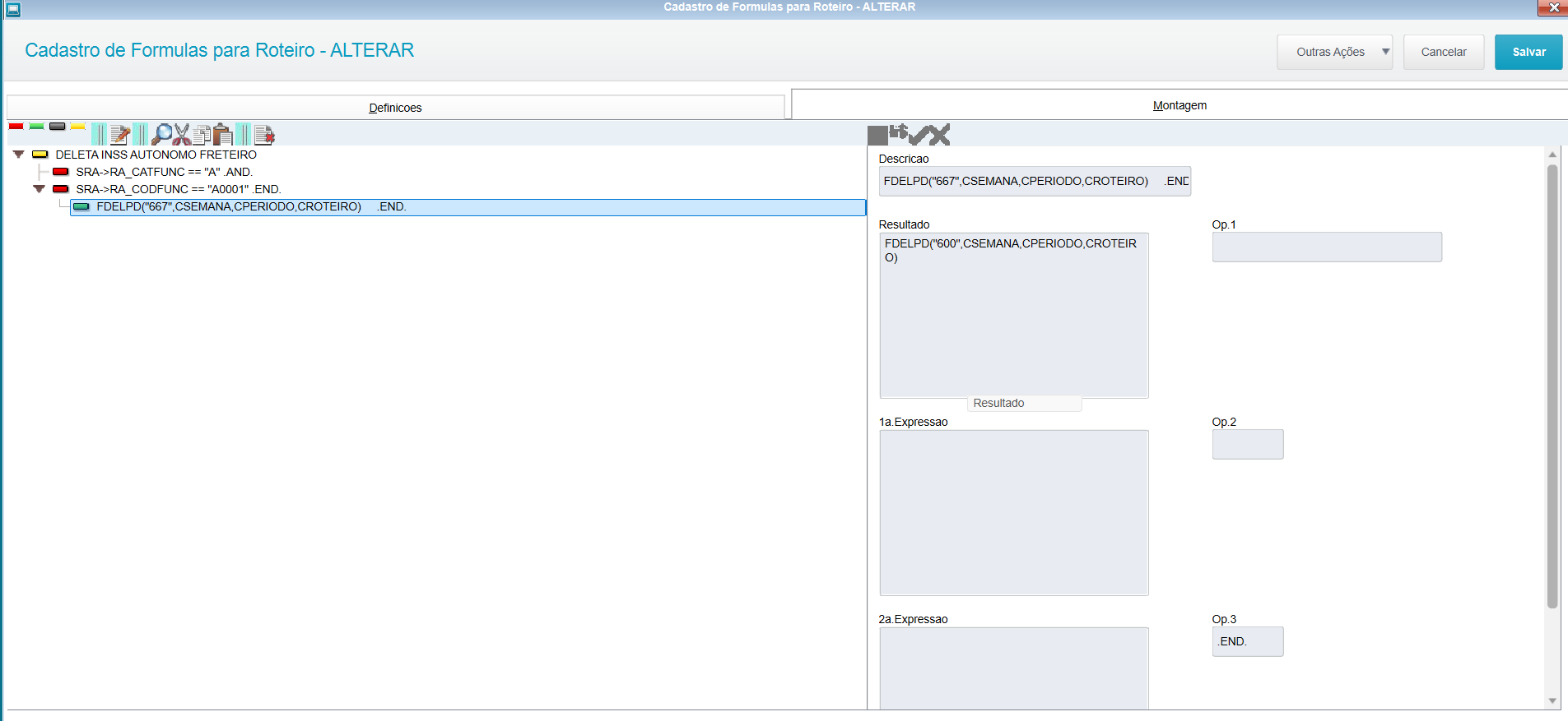 Alguém pode me ajudar a elaborar essa fórmula na rotina Cadastro de Formulas para Roteiro (GPEA290).
