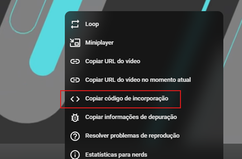 Em sequência selecionar a opção – Copiar código da Incorporação
