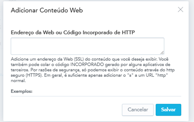 5° Ao copiar o link, é preciso colar o mesmo na tela de Adicionar Conteúdo Web