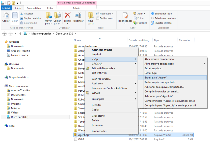 (1) Extrair a pasta “Agent.zip” no diretório C:/