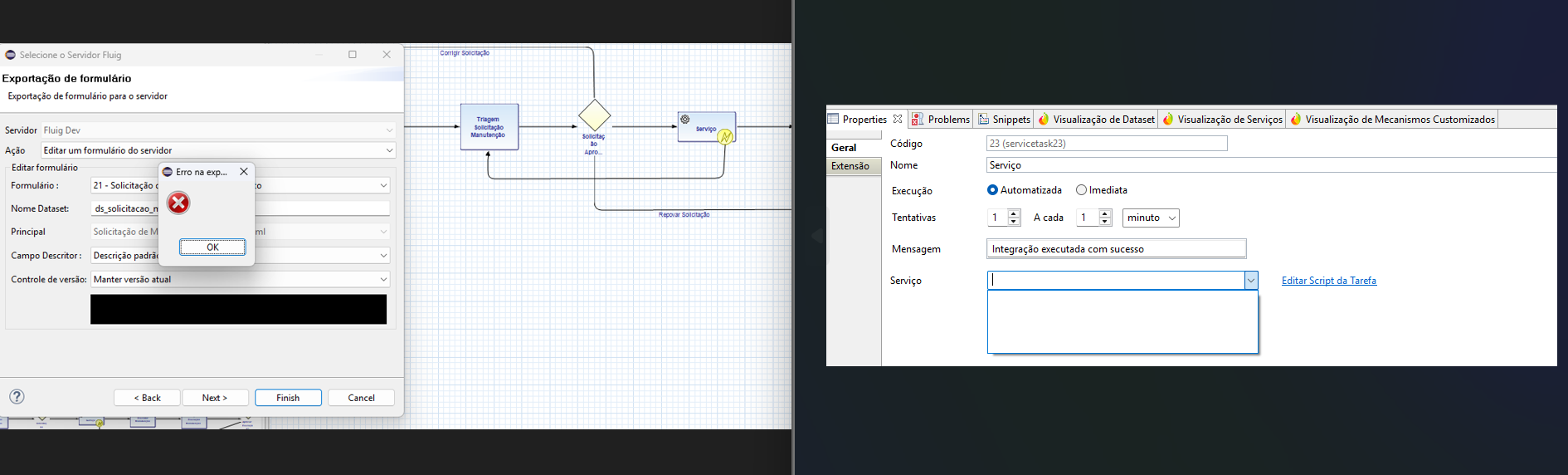 O problema só acontece quando tem os componentes de Tarefa de Serviço e Tarefa de Script no diagrama.
