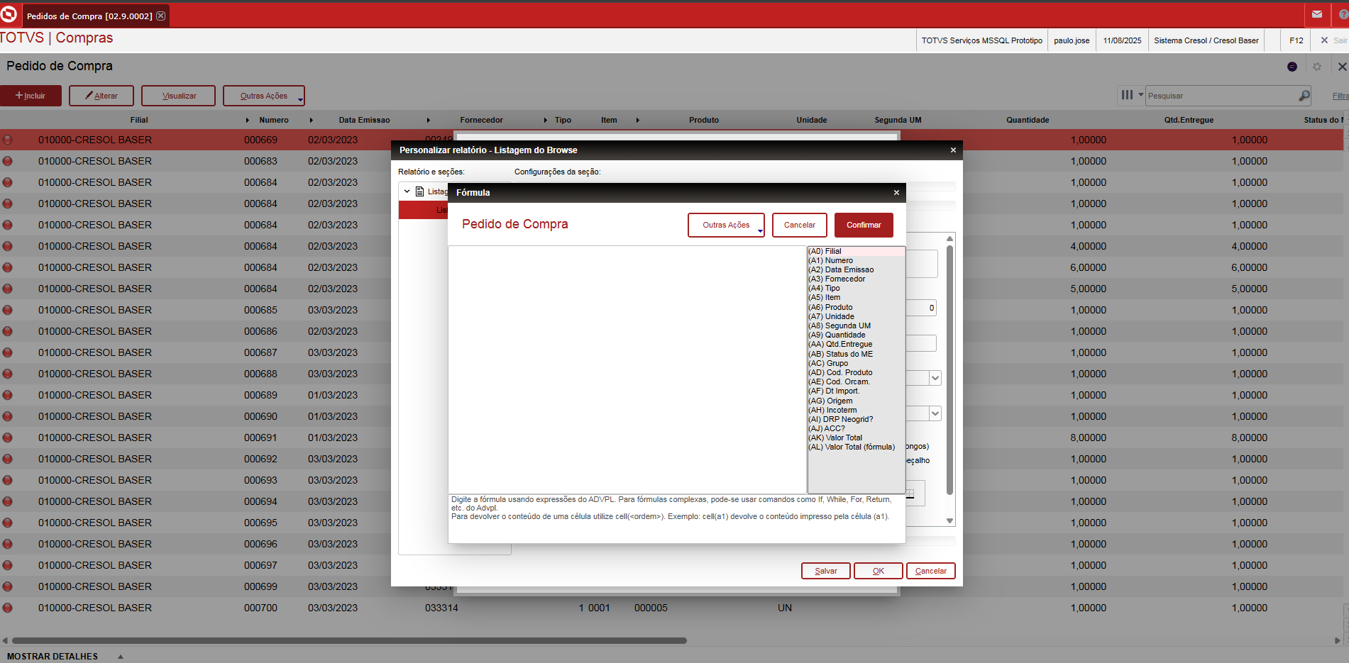 Na rotina mata121 (Compras → Pedido de Compra) o solicitante imprime o browse para gestão e etc, porém necessita que ao imprimir tenha o valor total e o usuário no relatório.