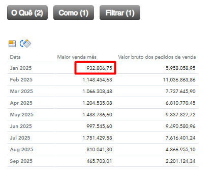 A métrica tem como objetivo identificar o maior valor de venda em um mês específico.