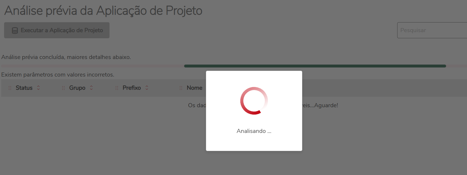 Alguém aí está tendo problemas com o aplicador de projetos a quente ? O meu está ficando travado nesta tela de verificação sempre, mesmo com o ambiente todo atualizado o problema continua. Já limpei os artefatos da SystemLoad, reiniciei os serviços, acessei usando admin e não funciona;